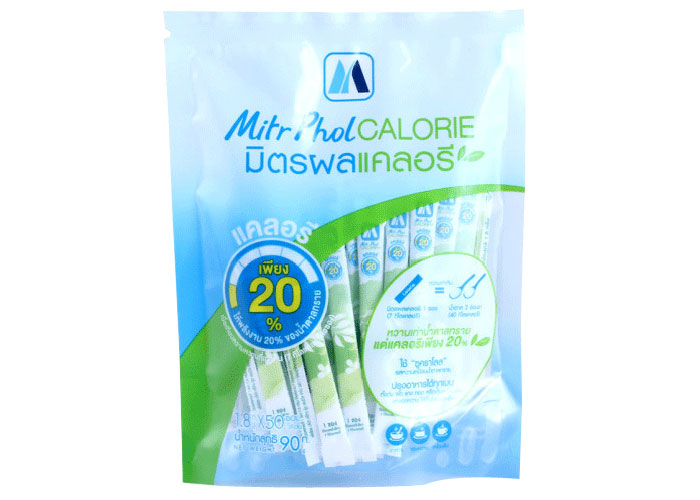 Mitr Phol Calorie, new trend of sweet lover who also concern of health, the same sweet taste with only 20% calories for cooking and brewing "without aspartame" that can be used in high temperature cooking process. Mitr Phol Calorie contains sugar 95%, Erithyto14.2596,Sucralose 0.75% Sugar substitute comparison between " Mitt Phol Calorie " and " Sugar " (by the same level of sweetness) Aspartame is an artificial non-saccharide sweetener that must be avoided by people with the genetic condition (phenylketonuria) .